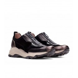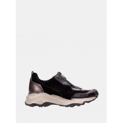 Deportivo slip-on para mujer. Con una cremallera central que facilita el calce. Su suela gruesa de goma ofrece excelente tracción y soporte, ideal para largas caminatas o un uso diario activo. El diseño mezcla texturas suaves que las hacen visualmente atractivas.