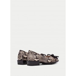 Bailarina de punta afilada para mujer. Con detalle de lazo tubular en piel sintética en el empeine.Piso efecto goma con diseño de perfil de tacos y tacón de 2,5 cm.Elaborada en piel vacuno con grabado y print de anaconda.Forro interior en piel.Tecnología Triflow: triple almohadillado en la zona de la pisada que absorbe los impactos y aporta un efecto acolchado al caminar.