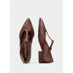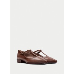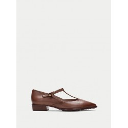 Zapato de piel para mujer. Con punta afilada y hebilla ajustable. Piso efecto goma con diseño de perfil de tacos y tacón de 2,5 cm. Forro interior en piel. Tecnología Triflow: triple almohadillado en la zona de la pisada que absorbe los impactos y aporta un efecto acolchado al caminar.