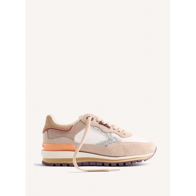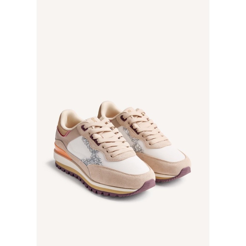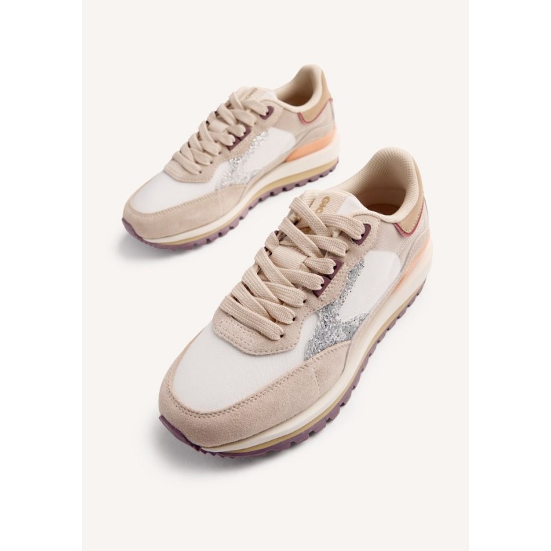 Deportivo de piel serraje para mujer. Con rejilla superpuesta. Detalle de pieza brillante. Cuentan con plantilla Gio Memory Effect, un sistema de efecto memoria que amortigua y suaviza la pisada.