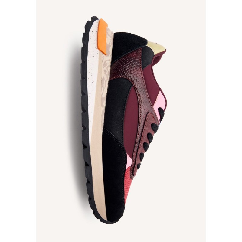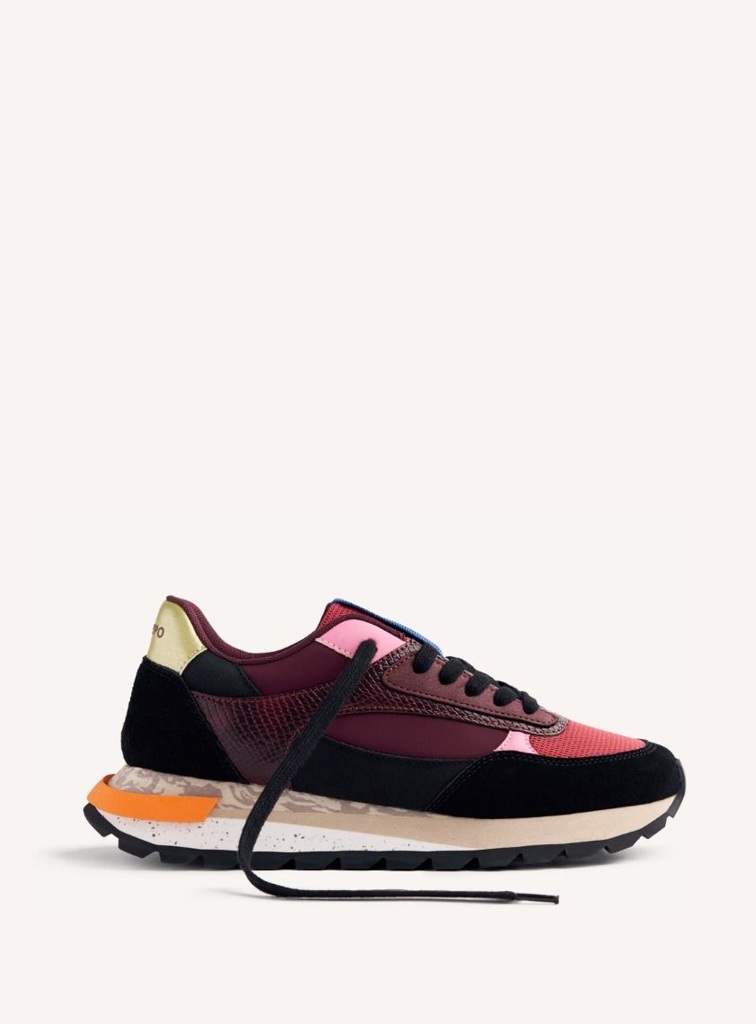 Deportivo de piel para mujer. Piezas con efecto serpiente y Plataforma estampada. Contraste de colores y texturas. Cuentan con plantilla acolchada y extraíble.