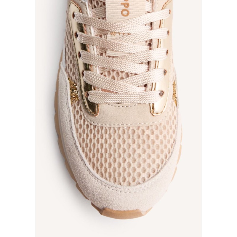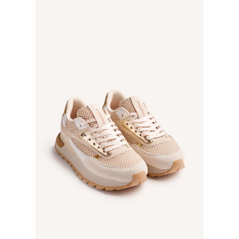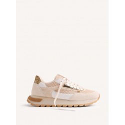 Deportivo de piel para mujer. Piezas metalizadas, brillantes y con acabado craquelado. Cuentan con plantilla acolchada y extraíble.