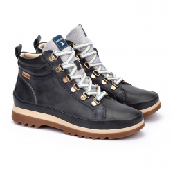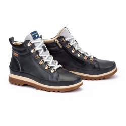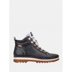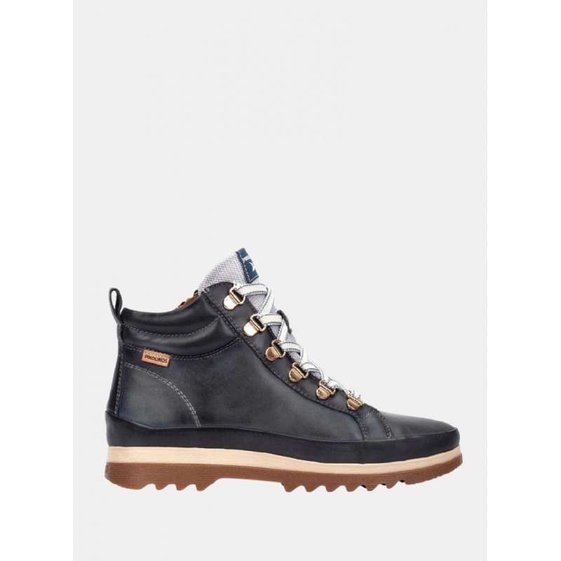 Botin deportivo de piel para mujer. Plantilla extraible. Cierre de cordones y cremallera.