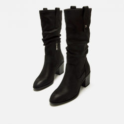 Bota de tacón para mujer. De caña alta con tacón ancho y acabado arrugado en la parte superior es ideal para el día a día durante los meses más fríos.
