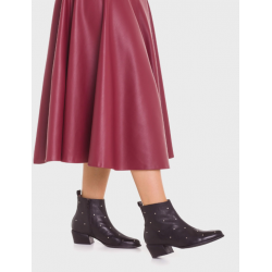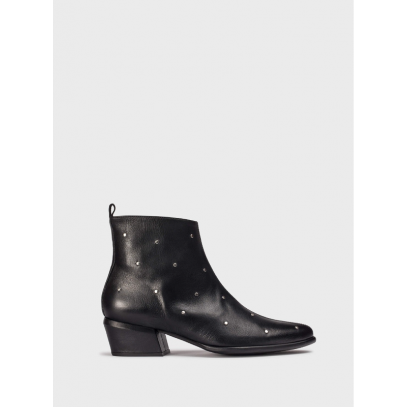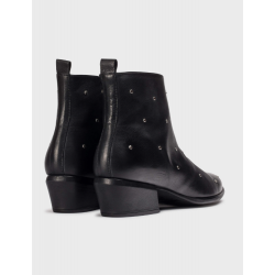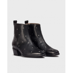 Botines confeccionados en piel para mujer. Con microtachas metálicas distribuidas por todo el empeine. Incorpora cremallera lateral interior para un ajuste cómodo y funcional, y tiradores en ambos talones del caño que refuerzan su estética urbana. El tacón de altura media aporta estabilidad sin renunciar a la sofisticación. La suela flexible aporta un extra de comodidad, combinado con la plantilla interior de MemoryGel que asegura una pisada amortiguada en cada paso.