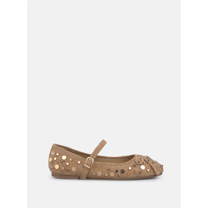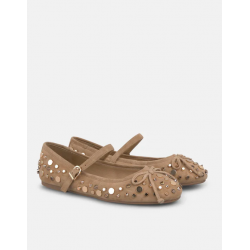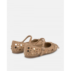 Francesitas con tachas para mujer. Cierre con hebilla. Detalle lazo.