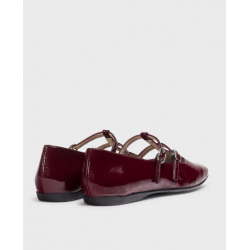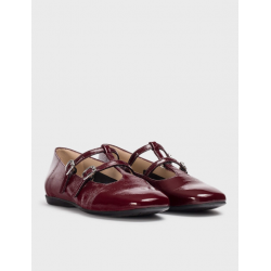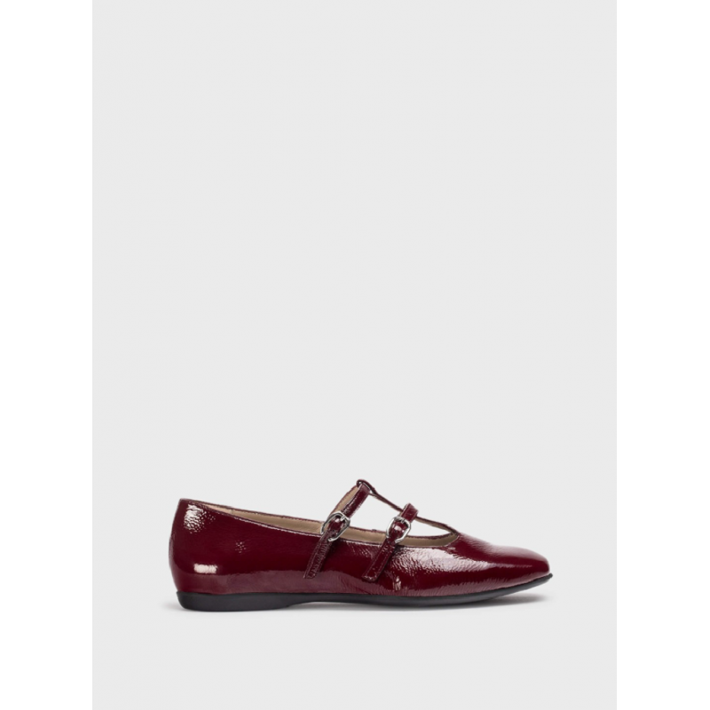 Merceditas en piel charol para mujer. De doble tira cruzada con hebillas metálicas, que aportan un ajuste regulable y un sutil aire retro. La plantilla interior de MemoryGel garantiza una pisada amortiguada en cada paso, asegurando máximo confort a lo largo del día.