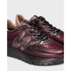 Deportivo de piel para mujer. Puntera redonda. Cierre de cordones. Plantilla extraible.