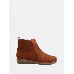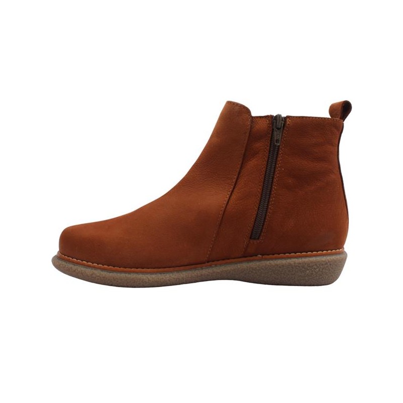 Botín confeccionada en nobuk para mujer. Cuenta con una cremallera lateral para facilitar su uso y discretas inserciones elásticas que proporcionan un ajuste cómodo y flexible. Plantilla extraíble.