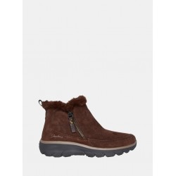 Botin de ante para mujer. Con forro de piel sintética, cierre lateral con cremallera y plantilla Skechers Air-Cooled Memory Foam® con amortiguación.