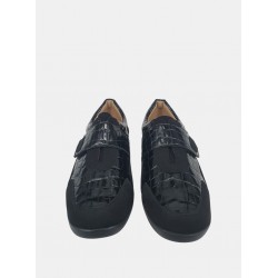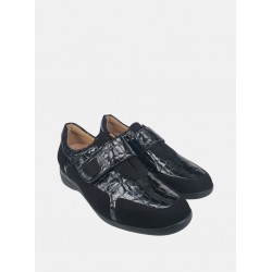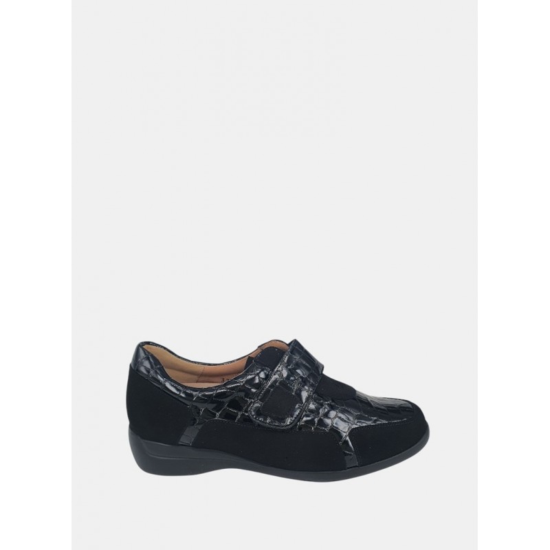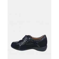Zapato con tira ajustable para mujer. Plantilla extraíble Flex 2.0. Acolchado interior efecto colchón. Horma ancha.