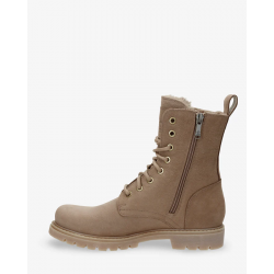 Bota de piel para mujer. WATERPROOF. Cierre de cordones y cremallera. Forro interior de Pelo. Plantilla anatómica extraíble. Suela de caucho natural, flexible y resistente.