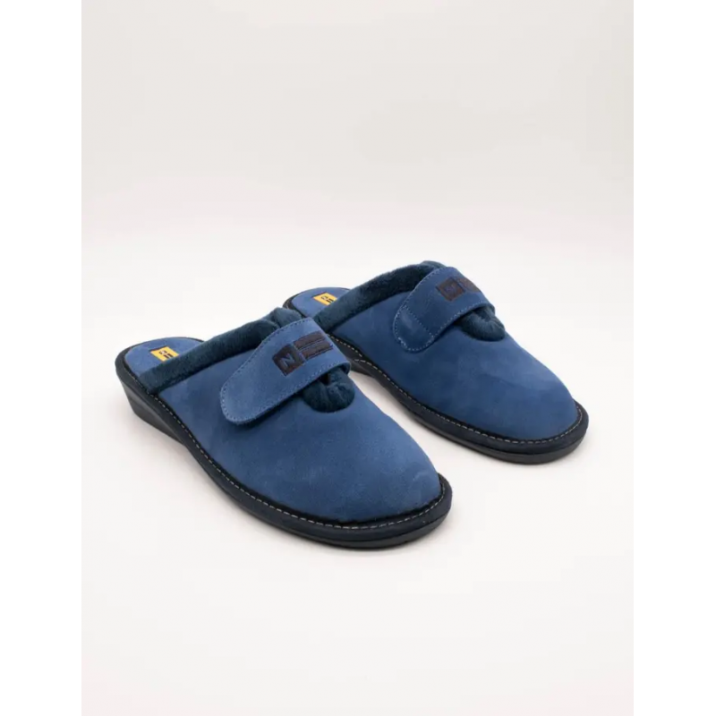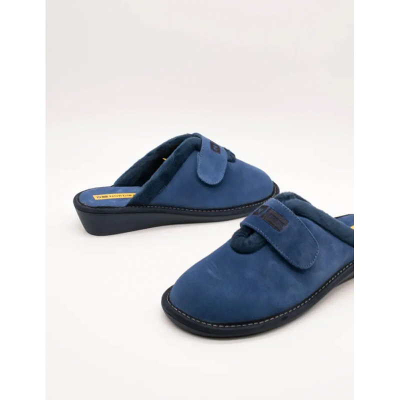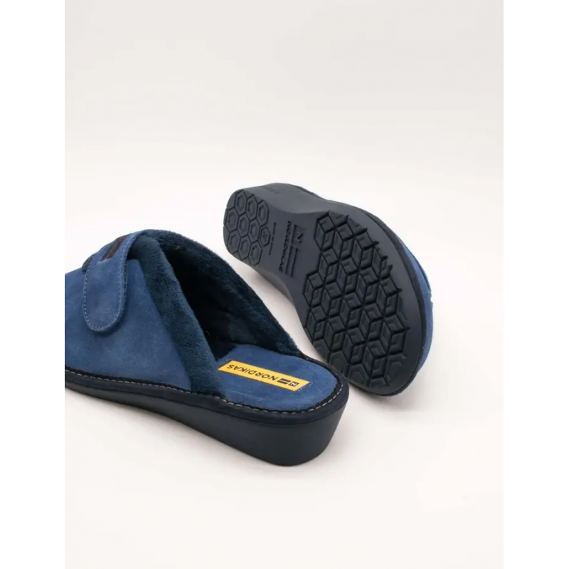 Zapatillas de casa de material afelpado para mujer abiertas con interior de textil, piso de goma de 2 cm y cierre de velcro.