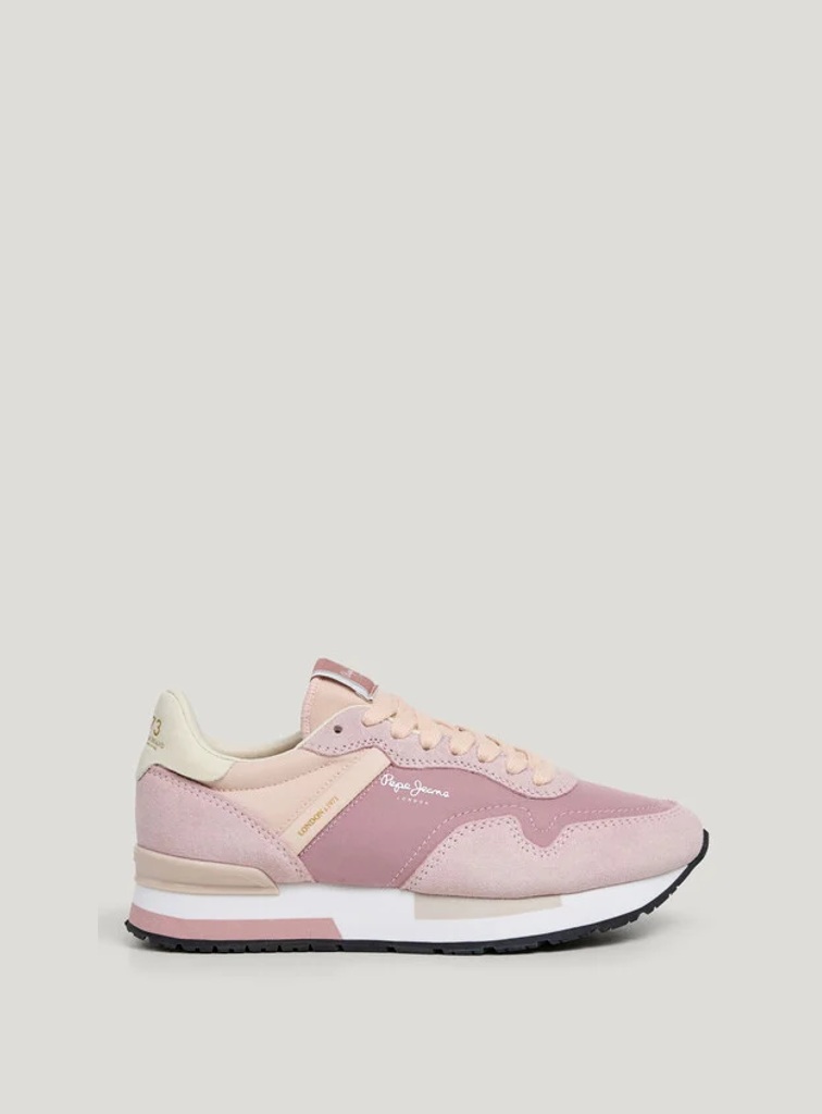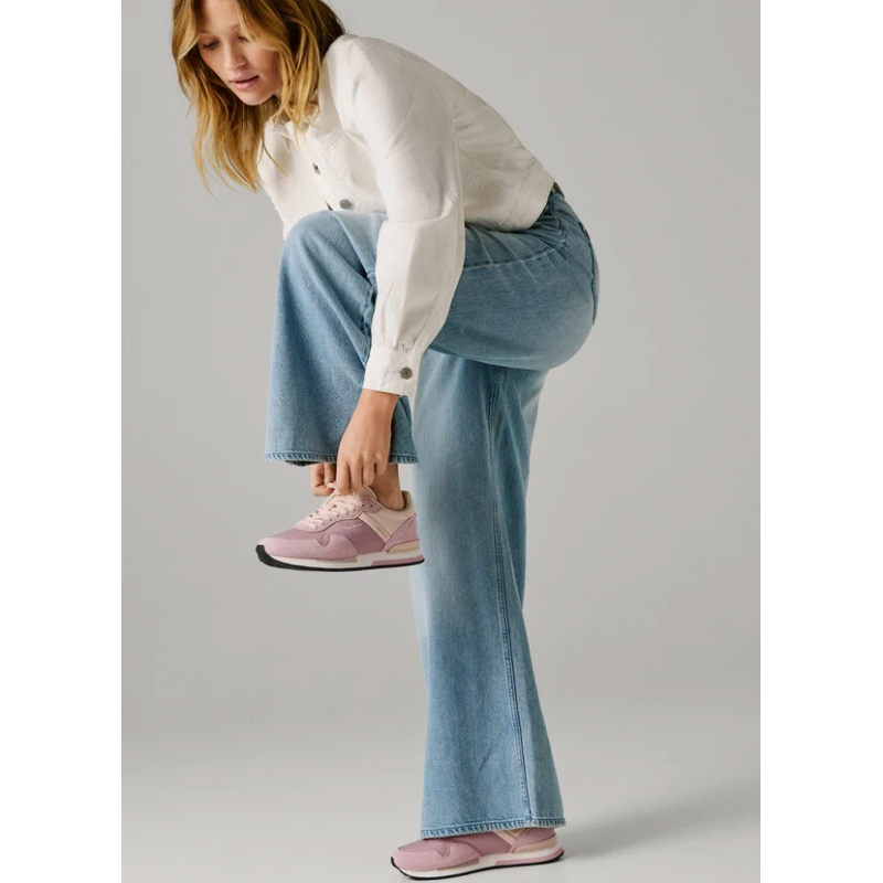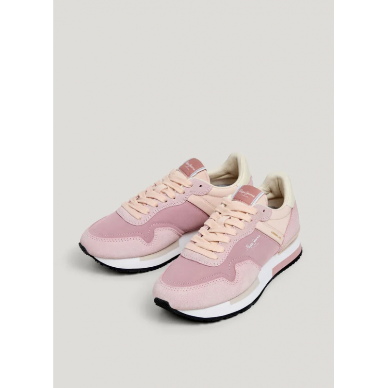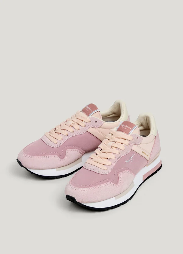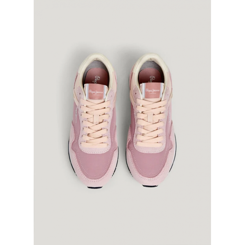 Deportivo running de ante para mujer. Cierre de cordones. Detalles de ante en puntera, cordonera y parte inferior del talón. Logo PEPEJEANS termosellado en lateral. Plantilla termoformada y extraíble. Entresuela ultraligera de EVA tricolor.