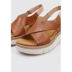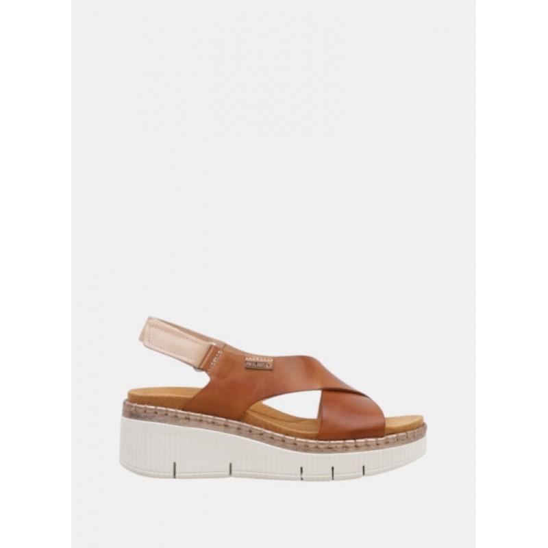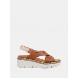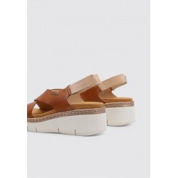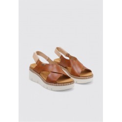 Sandalia cuña para mujer de diseño de dos tiras cruzadas con cierre al tobillo de velcro asegura un buen ajuste, detalle de la marca, plantilla acolchada y una altura de 6 cm.