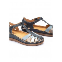 Sandalia combinada en piel para mujer, semiabierta con cierre al tobillo de velcro para un mejor ajuste, plantilla acolchada y cuña de 4 cm. Ideales para esos días en los que quieres lucir bien sin renunciar a la funcionalidad. ¡Deja que tus pies se sientan tan felices como tú!
