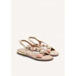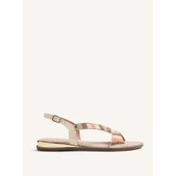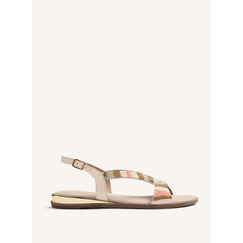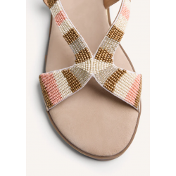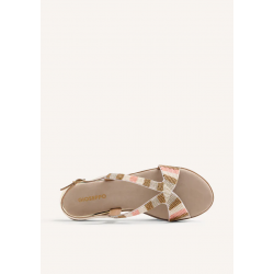 Sandalias de piel para mujer. Con detalle de cuentas multicolores. Cuña metalizada. Cuentan con planta acolchada y cierres ajustables en el tobillo.