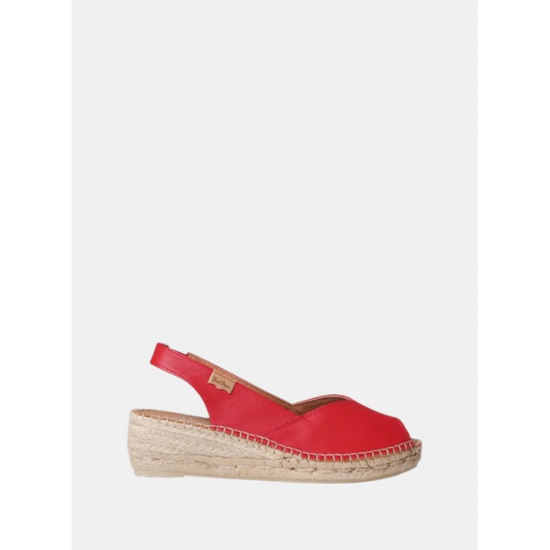 Alpargata para mujer con cuña estilo peep toe elaborada en piel en tonos lisos y con forro de textil transpirable. La cuña de yute tiene una altura total de 5 cm, de los cuales 3 cm pertenecen al tacón y 2 cm a la suela. La base de la suela es de goma antideslizante. La planta interior es de piel y la tira trasera cuenta con un elástico interior para un ajuste perfecto al pie.