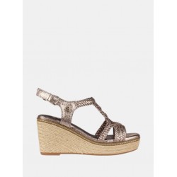 Sandalia de cuña para mujer de diseño entrelazado y metálico, cierre al tobillo de hebilla y una cuña de aprox. 9 cm. Ideal para tus planes diarios o salidas especiales