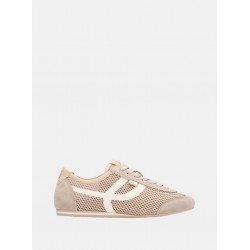 Deportivo combinado para mujer de diseño casual de malla, detalles al contraste, cierre de cordones y suela plana antideslizante.