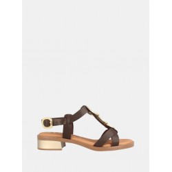 Sandalia en piel para mujer de diseño con tiras cruzadas más detalles decorativo metálico en el empeine realza el conjunto, cierre de hebilla ajustable en el tobillo que permite un ajuste personalizado y seguro, plantilla acolchada estructura ergonómica, tacón bajo y ancho de una altura de prox.4 cm.