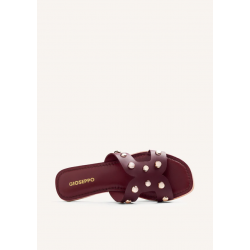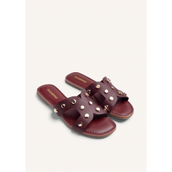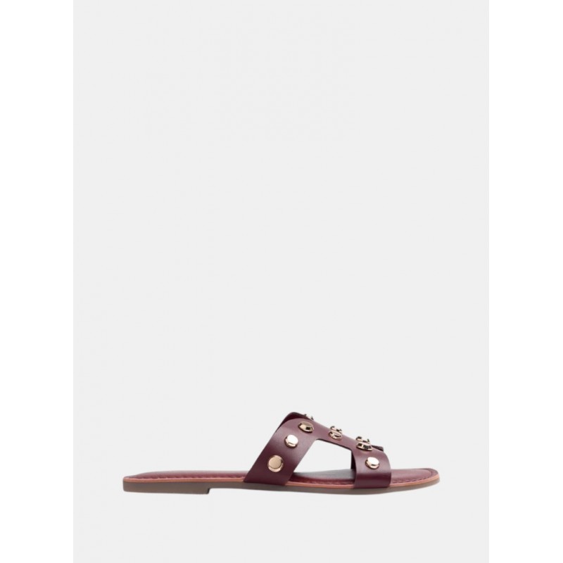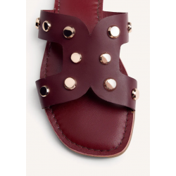 Sandalia en piel para mujer la metalizada platino con tono dorado con detalle de tachuelas, plantilla acolchada y plana