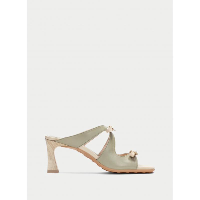 Sandalia para mujer mule con adornode lazos, punta cuadrada, forro interior transpirable y termorregulador, plantilla tecnología triflow de triplealmohadillado y tacón efecto madera de 6,5 cm.