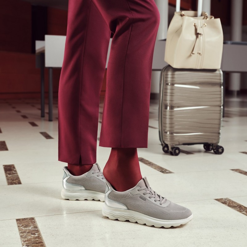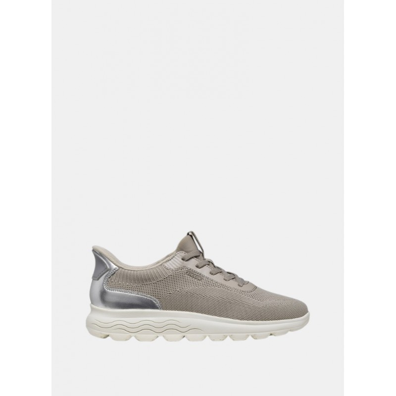 Deportiva Spherica™ PLUS para mujer con tecnología Fast in, que permite un calce fácil y rápido sin necesidad de usar las manos. Transpirable y ultra amortiguada, de color gris pardo claro con detalles de color dorado claro, cuenta con una empella realizada con una combinación de tejido efecto punto y material efecto piel metalizada. Perfecto para usar a diario, este modelo es ideal para añadir un toque deportivo a los looks informales.