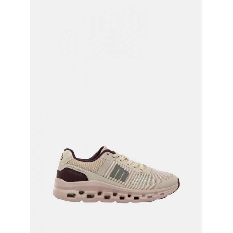 Deportivo para mujer de diseño en tonos claros, detalle de la marca, cierre de cordones, plantillas con tecnología starfit que mejoran la comodidad en cada paso, suela gruesa con tecnología extralight y una altura de aprox. 5 cm. Ideal para tu día a día.