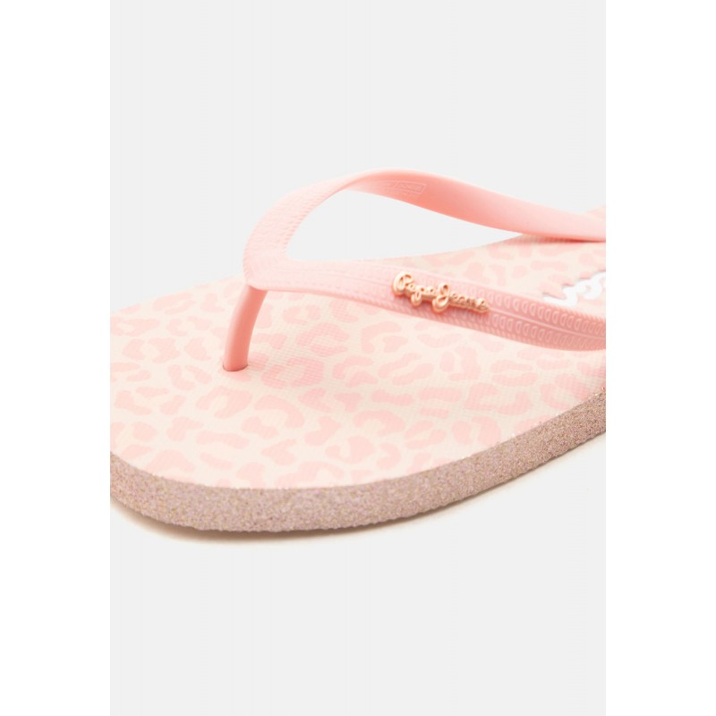 Chanclas de dedo confeccionadas en fibra sintética. Puntera abierta, estampado animal print en suela y borde con efecto brillo. Suela de 2 cm.