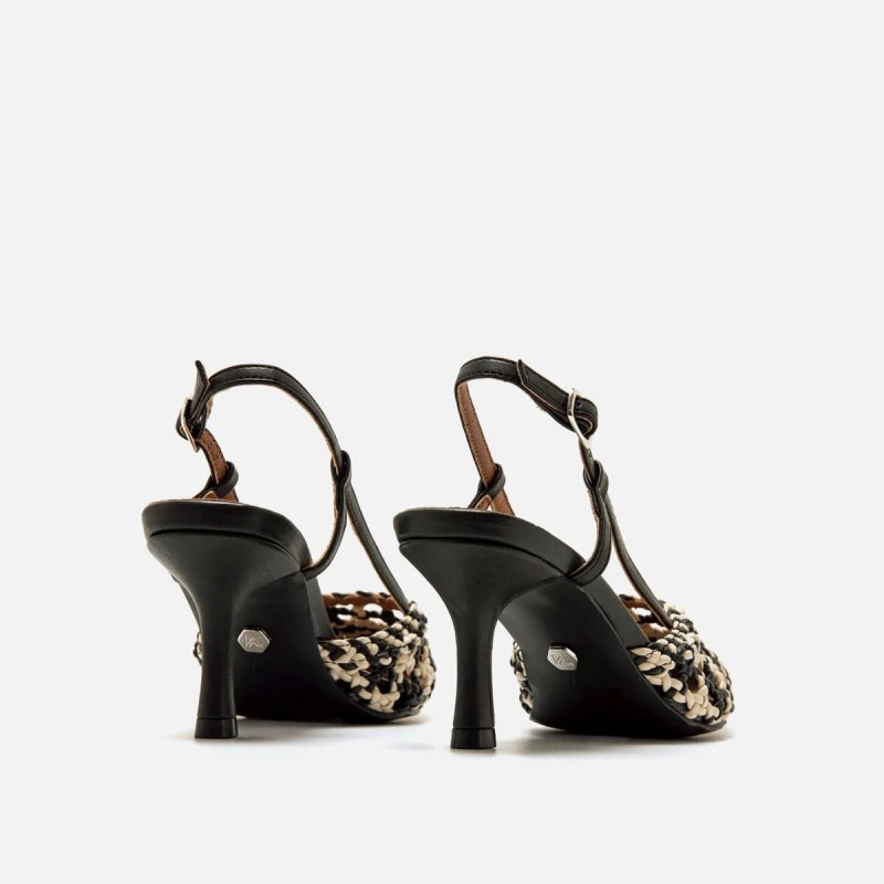 Zapato de tacón destalonado de diseño trenzado, puntera afilada, cierre de tira trasera con hebilla metálica ajustable que asegura una buena sujeción, plantilla con tecnología Airfit y una altura aprox. de 5 cm.