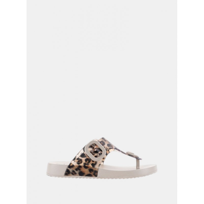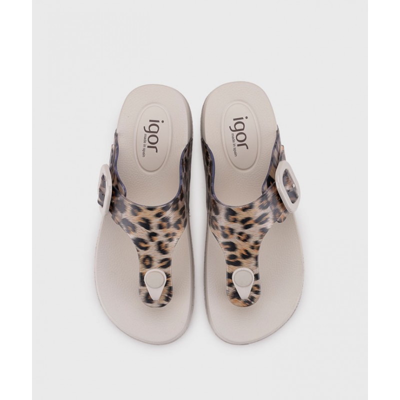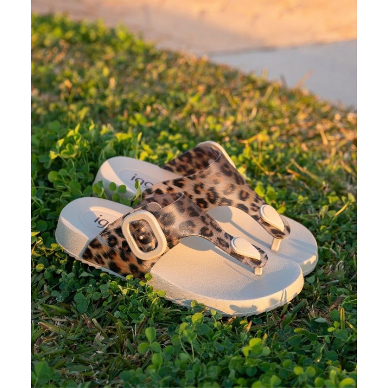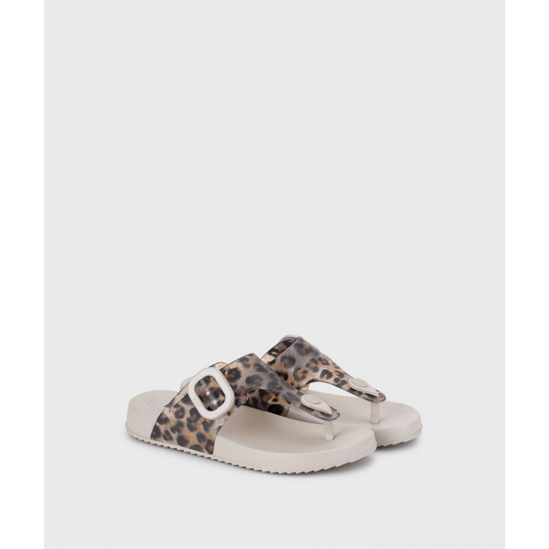 Esclava ligera para mujer de de diseño animal print con cierre de hebilla a contraste ajustable, fáciles de limpiar, plantilla anatómica, suela antideslizante y plana de una altura aprox.3 cm. Ideal para un día de playa, piscina o el uso diario en verano.
