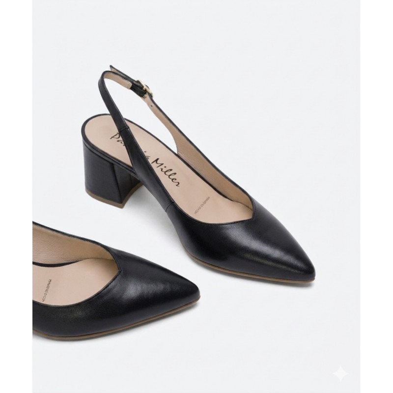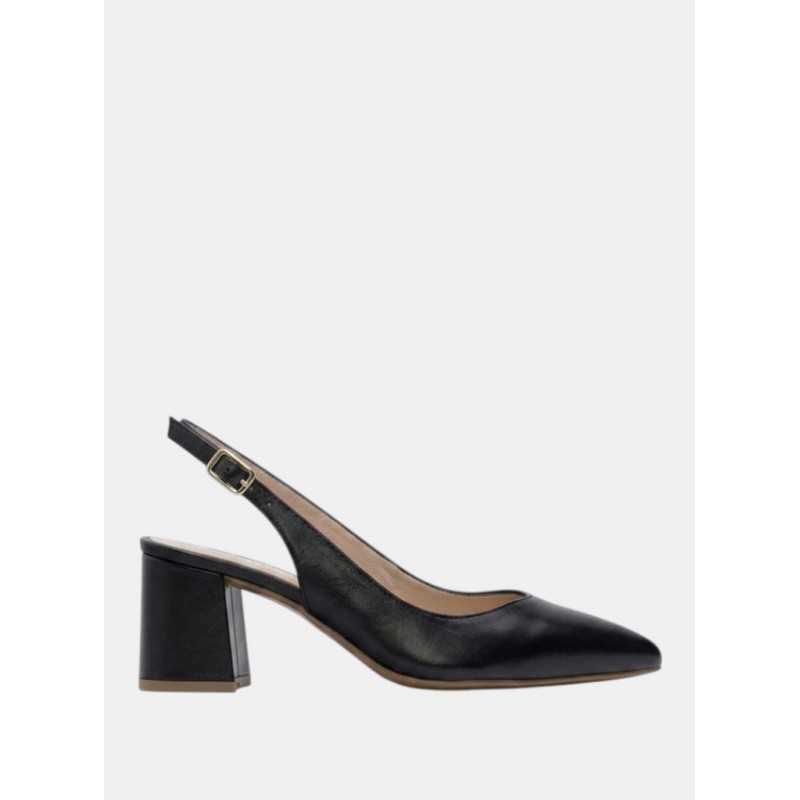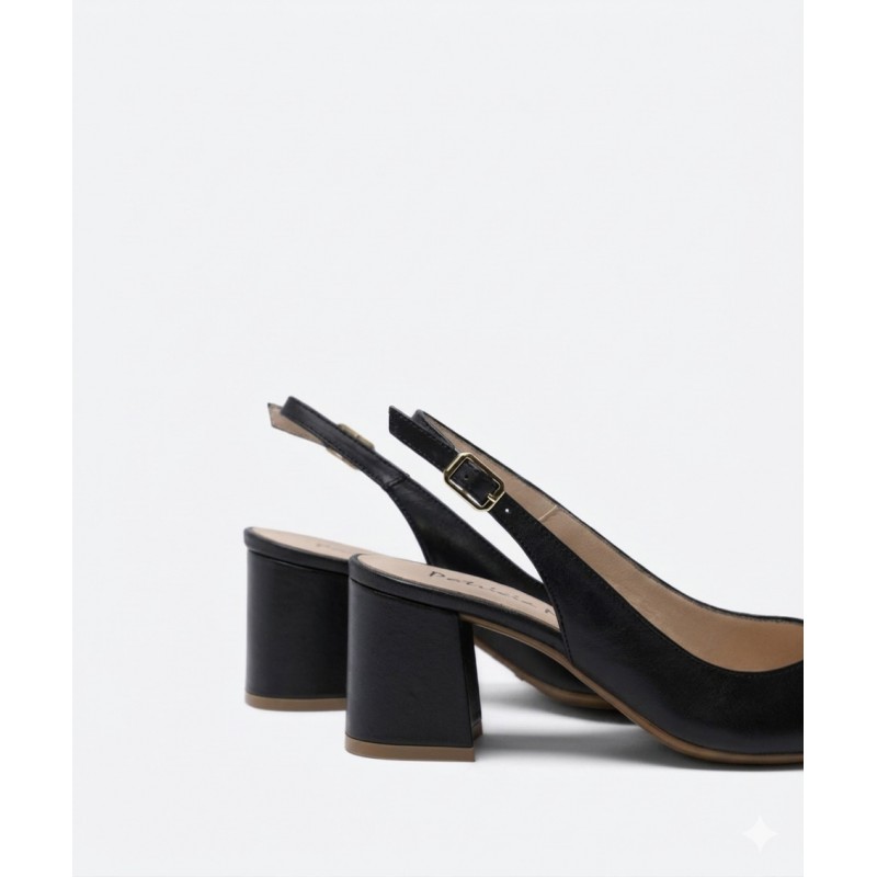 Zapato de salón destalonado modelo Olivenza en piel color azul marino, nude o negro. Punta fina y escote pico. Cierre mediante hebilla lateral. Tacón forrado al tono y reforzado con una lagrima de gel debajo de la plantilla para hacerlo aun más cómodo, altura 5 cm. La suela TPU hace que sea flexible y antideslizante