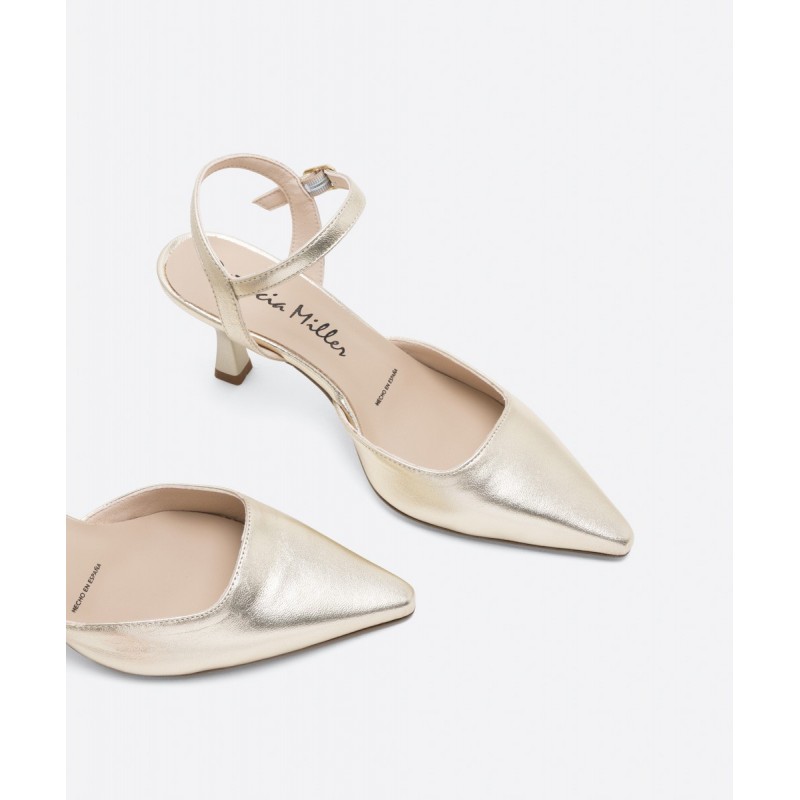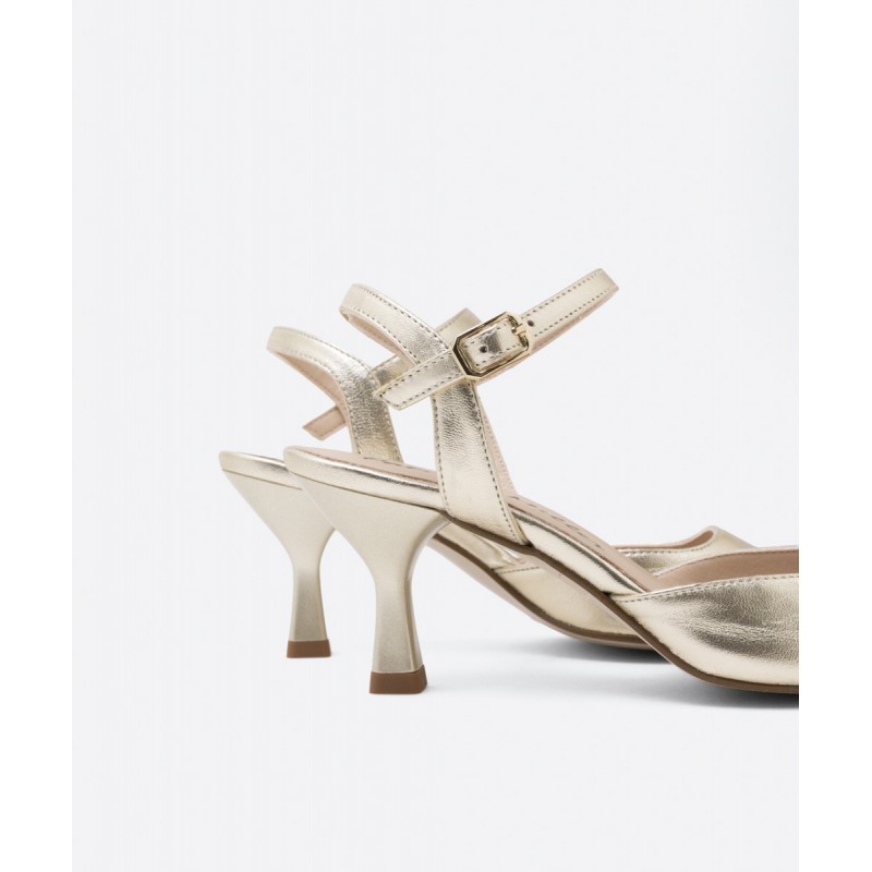 Zapato de salón destalonado Punta fina y escote pico. Cierre mediante hebilla lateral. Tacón, de 5 cm, forrado al tono y reforzado con una lagrima de gel debajo de la plantilla para hacerlo aun más cómodo. La suela TPU hace que sea flexible y antideslizante.