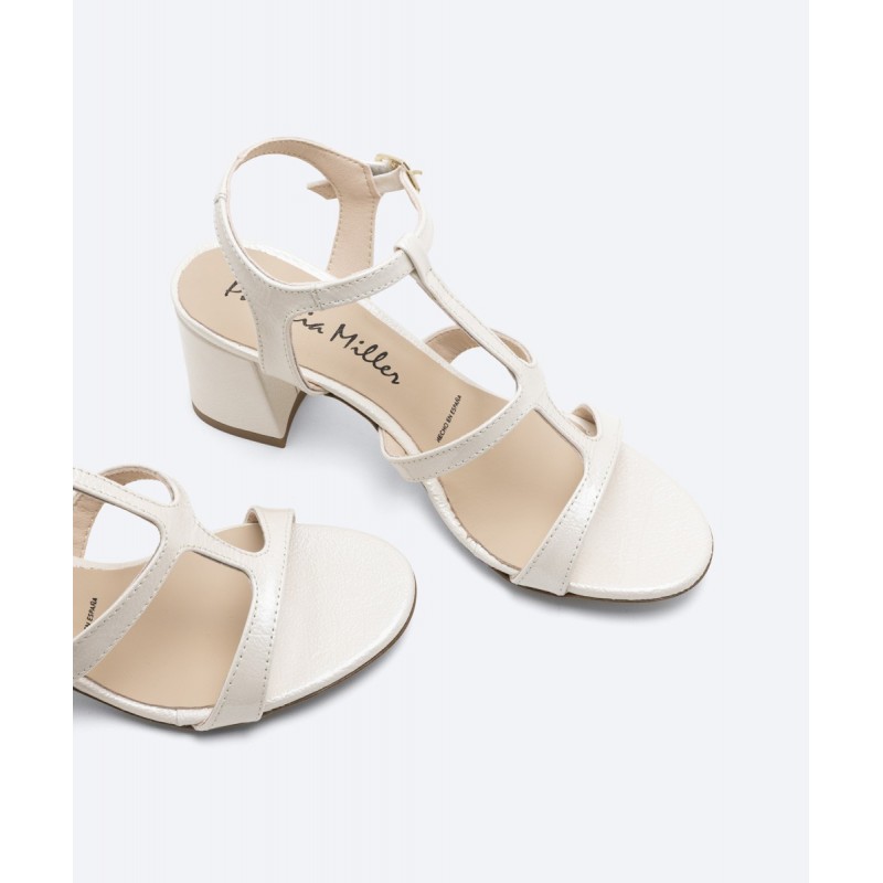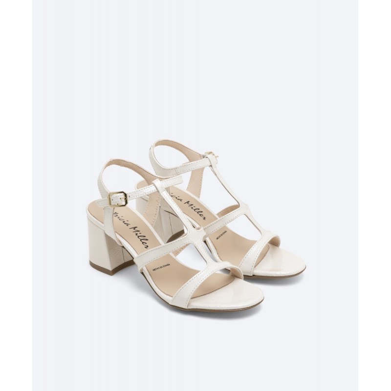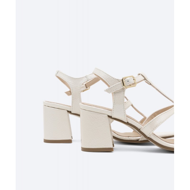 Sandalia de tacón de mujer modelo Quebec en piel charol color nude o piedra con una pala que se ajusta a la perfección a tus pies. Un precioso diseño con tacón de 6 cm de altura forrado al tono y puntera redonda. Incluye una lagrima de gel para mayor comodidad en todas tus pisadas. El cierre es mediante hebilla lateral.