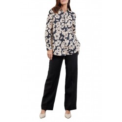 Camisa de manga larga para mujer. Cierre de botones. Estampado floral. Más largo en la espalda.