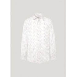 Camisa slim fit para hombre de cuello clásico con cinta logo en el interior, estampado de monogramas all over, puños abotonados y manga larga.