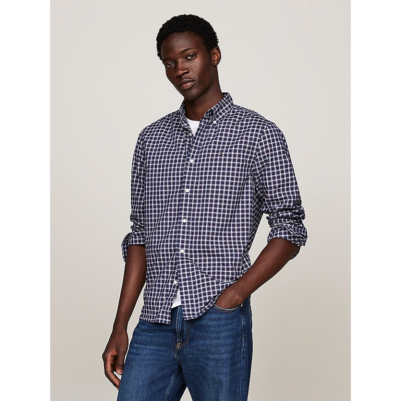 Camisa estampada para hombre.Cuello con botones.Puños redondeados con botón. Estampado integral de microcuadros escoceses. Corte regular.