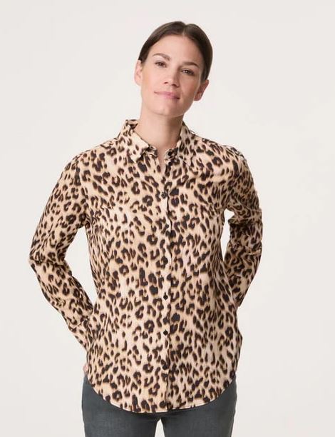 Camisas estampadas para mujer de cuello de solapa, cierre de botones y mangas largas con cierre de botón.