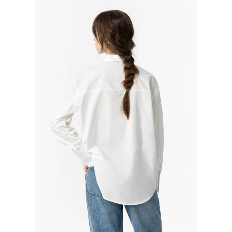 Camisa con bordados abiertos para mujer. Cierre de botón, cuello mao y manga larga con cierre de botón en los puños.