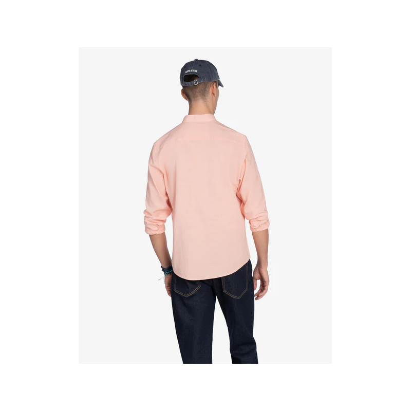 Camisa polera para hombre. Regular fit de manga larga con cuello mao y tapeta de botones. Su diseño versátil permite un look sofisticado y relajado a la vez, ideal para cualquier ocasión. Combina perfectamente con pantalones de lino o chinos para un estilo fresco y elegante.