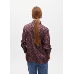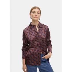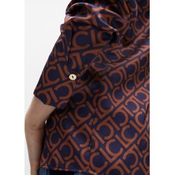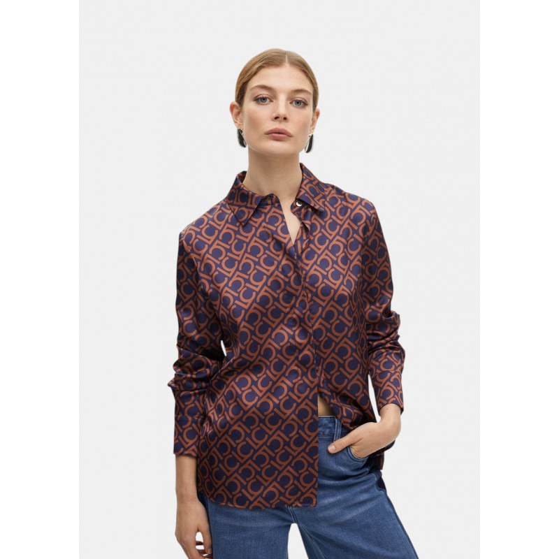 Camisa estampada para mujer. Recta con estampado de logo distintivo de Lola Casademunt. Mangas largas con puños abotonados. Cuello clásico y cierre frontal oculto. Confeccionada en tejido suave para un estilo elegante y moderno.