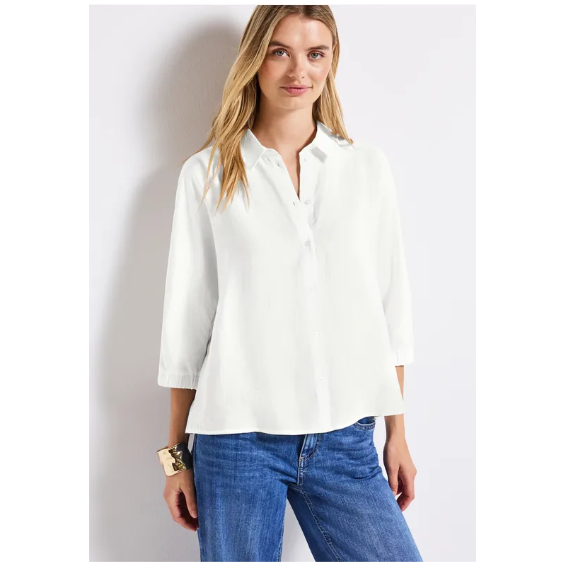 Camisa de manga larga para mujer. Cuello camisero clásico con un corte moderno y fluido. Las mangas cortas estilo dolman con puños elásticos y un brillo sedoso le dan un toque elegante. Su ligera mezcla de modal es especialmente cómoda, ideal tanto para la oficina como para el tiempo libre.
