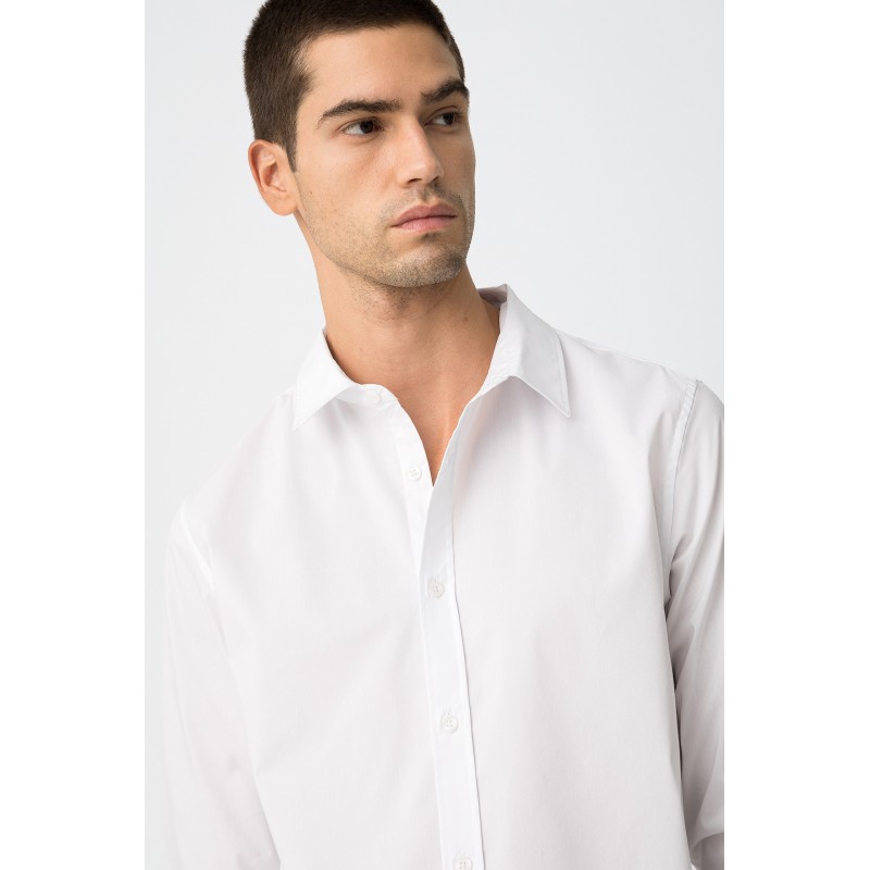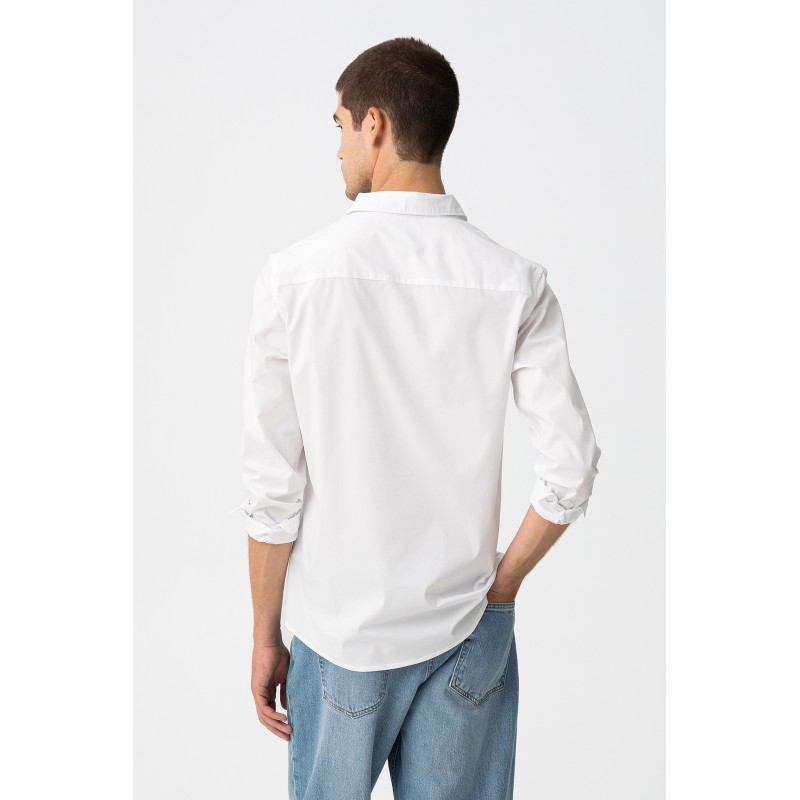 Camisa slim fit para hombre. Cuello camisero, cierre de botones, manga larga con botones en los puños y bajo redondeado.