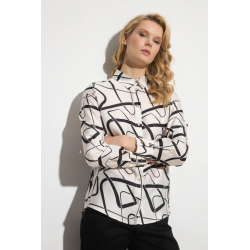 Camisa estampada para mujer.  Cuello camisero. Cierre de botones al tono. Diseño fluido. Manga larga ligeramente abullonada acabada en puño con cierre de botón. Bajo ligeramente redondeado.