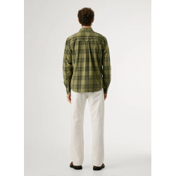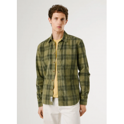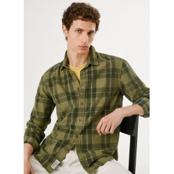 Camisa de pana para hombre. Corte regular. Cuello clásico. Estampado de cuadros escoceses por toda la prenda. Puños redondeados con dos botones.