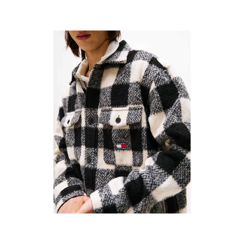 Camisa de franela para hombre. Estampada a cuadros. Cierre de botones. Dos bolsillos tipo sobre abotonados en el pecho. Insignia de Tommy en el bolsillo.