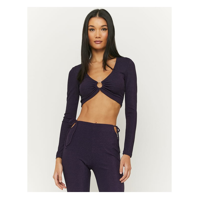 Top corto de manga larga con brillo.