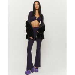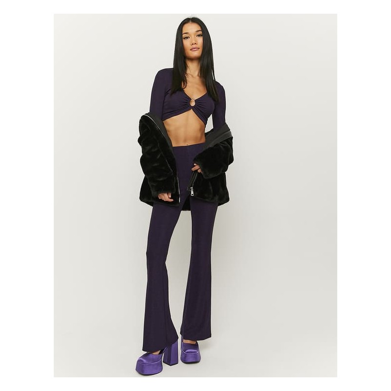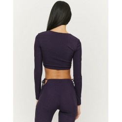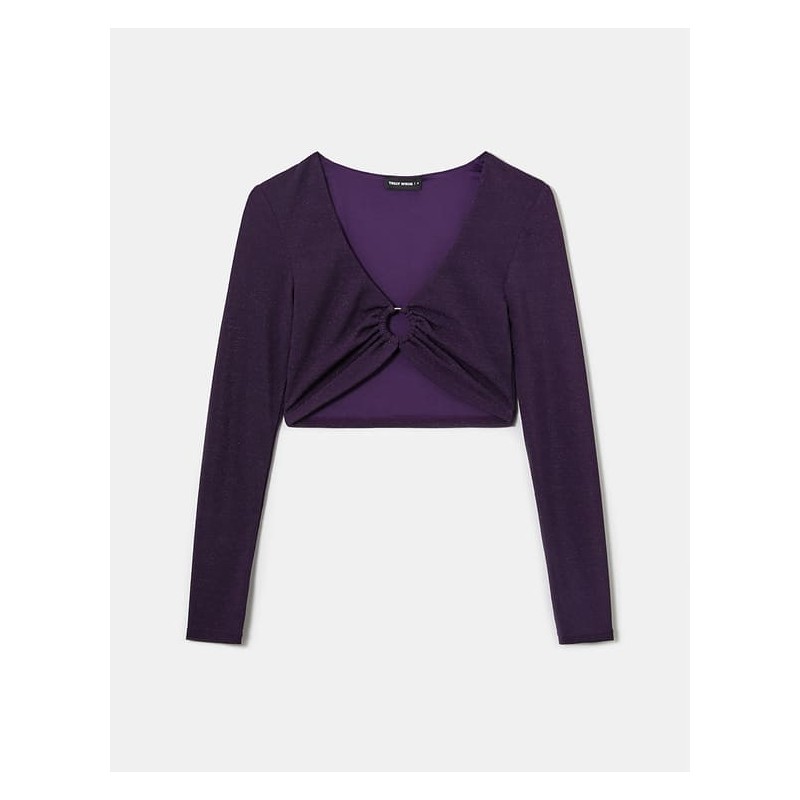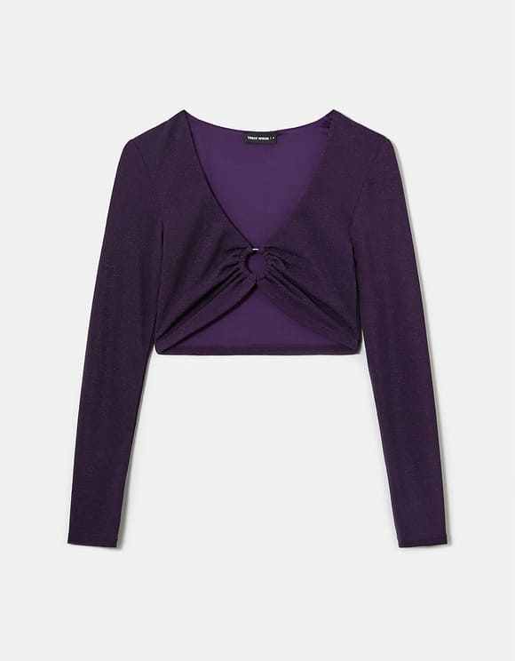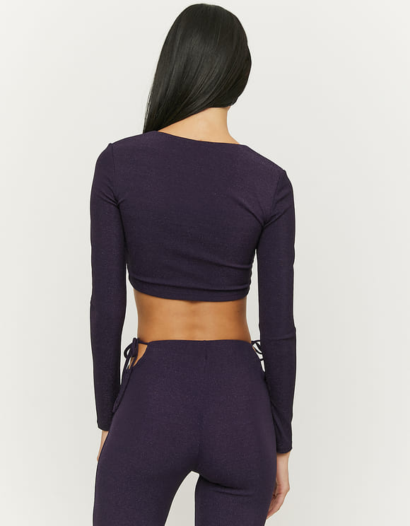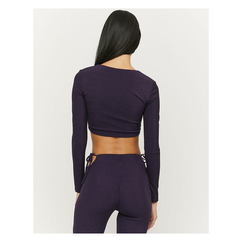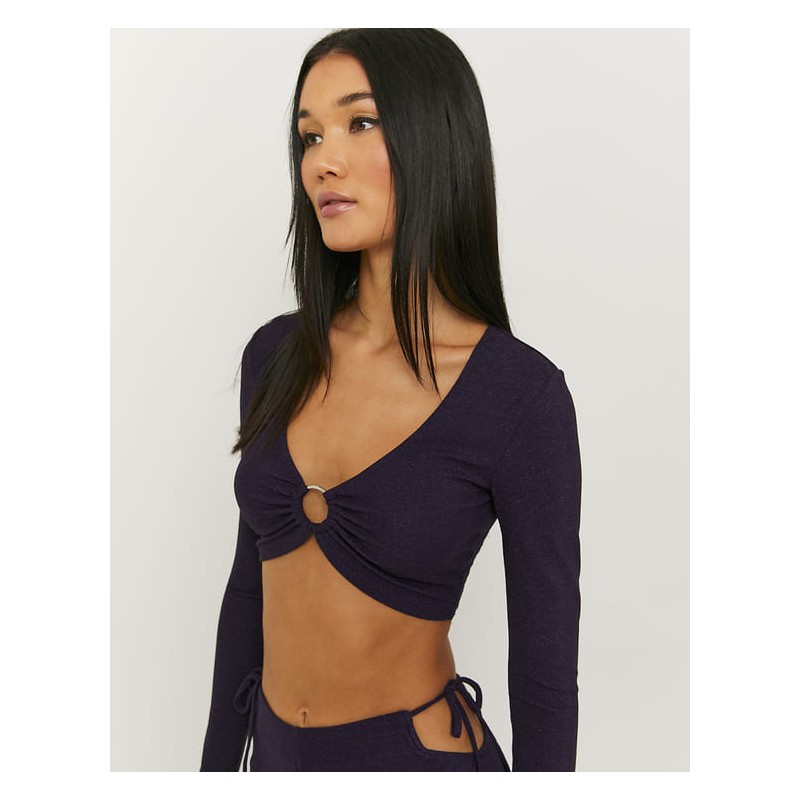 Top corto de manga larga con brillo para mujer