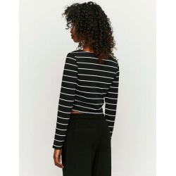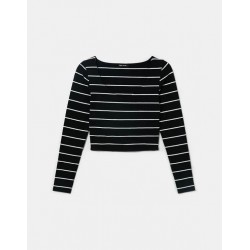 Camiseta tipo cropp de manga larga y cuello en pico.